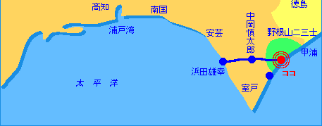 海部駅から阿佐東線に乗り換え10分、甲浦駅下車。 |